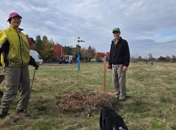 The Obsidians will be planting Black Oak and other trees in the Bethel Park. Planting these trees is attempt to mitigate the loss of Oregon ash trees at the site when the Emerald Ash Borer arrives in this area. The City of Eugene Parks and Open Space management is looking to increase the diversity of trees in this natural area because we are likely to lose ash.