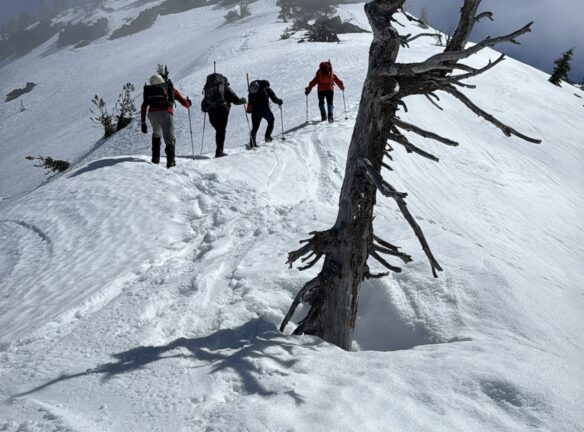 participant prerequisites: Participants need to be in good physical condition and have solid snow travel skills (ice ax use, self-arrest, and comfort on steep slopes). For those who choose to ski, you must be able to find your way back to the car in case you are separated from the hiking group.