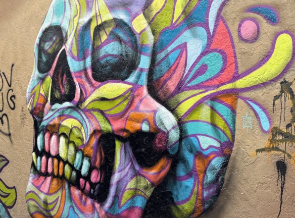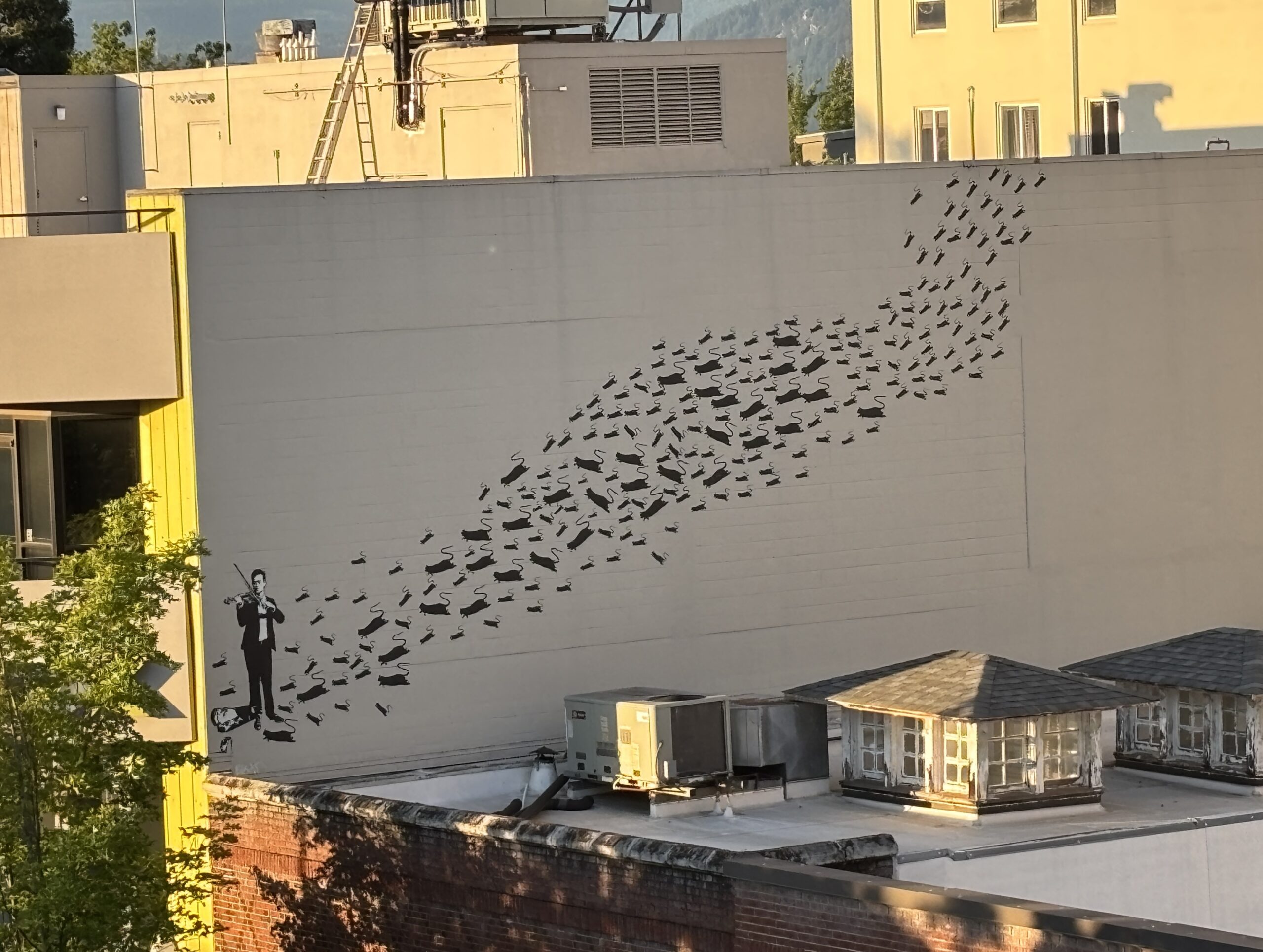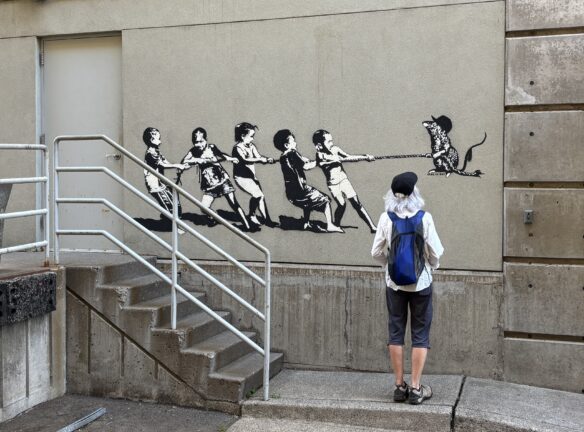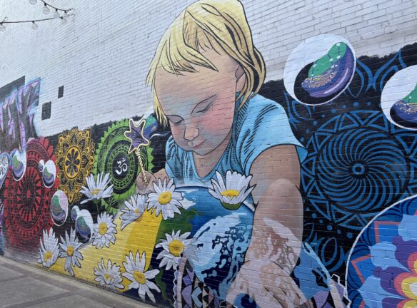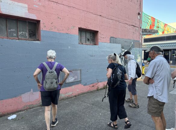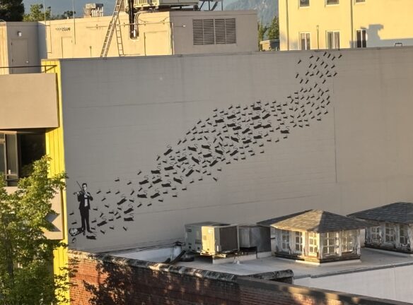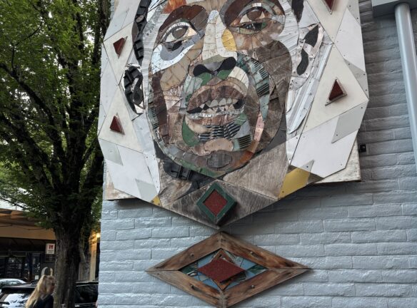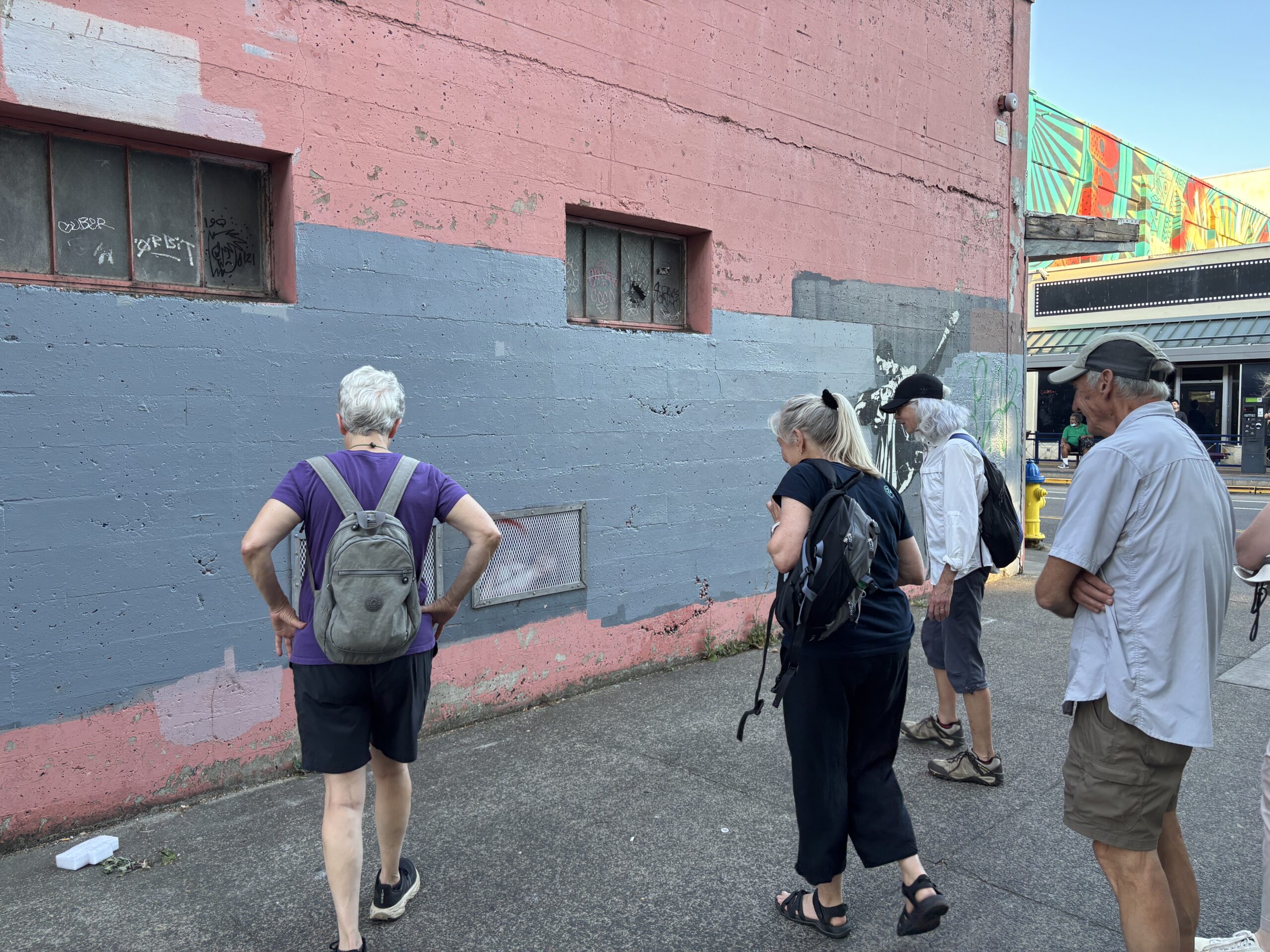 Downtown Eugene has some colorful building-sized murals along with micro-art pieces. Plan to walk 3 miles in total and up about 7 flights of stairs. Plan on being out for 2 to 2.5 hours. Our walk begins/ends inside the Graduate Hotel (66 E 6th Ave,) on the main floor next to the giant duck. Restrooms are available in the hotel, with a restroom (if needed) at the bus station halfway through the walk.