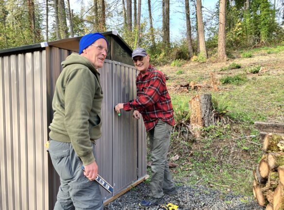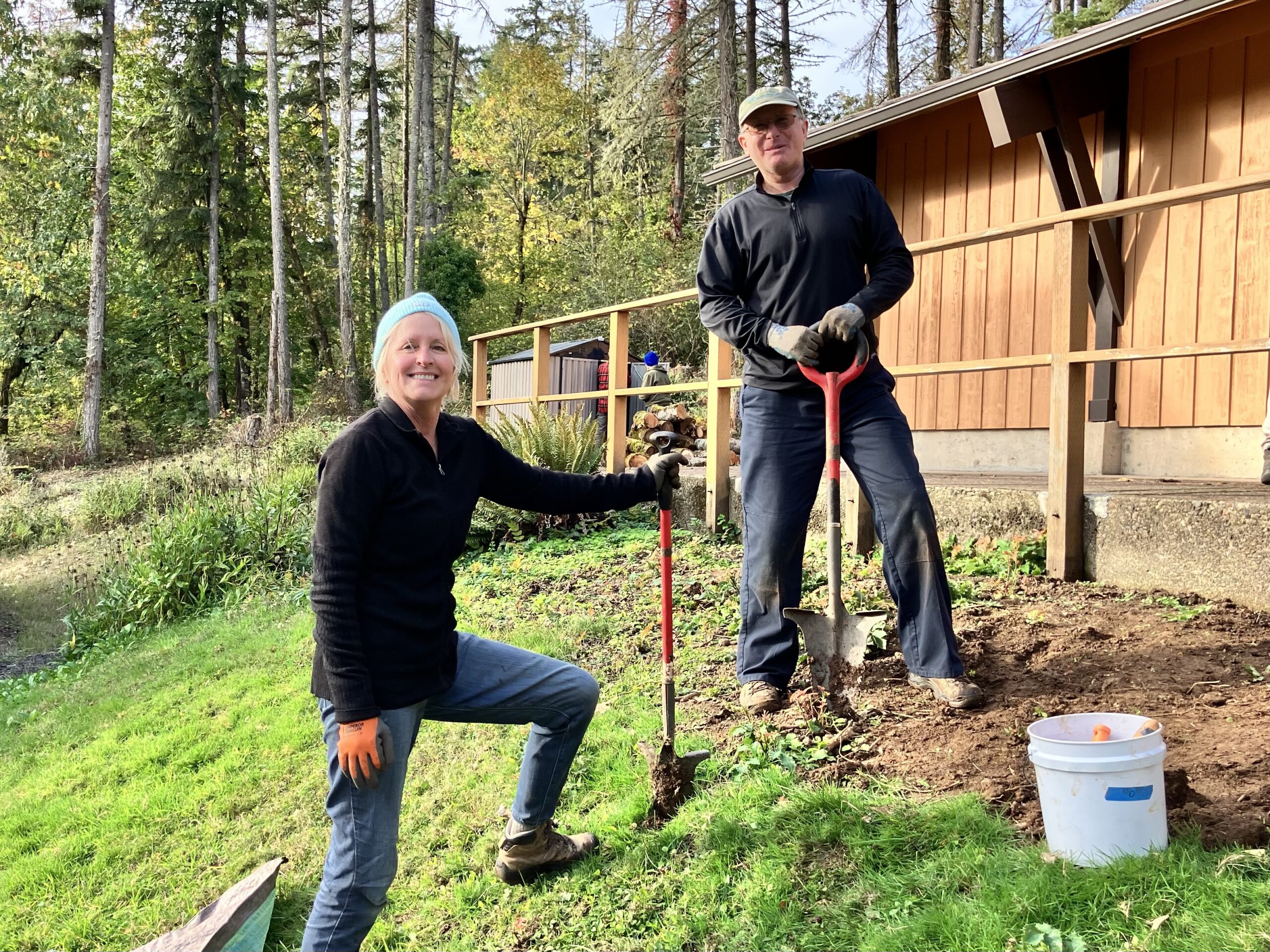 Come to a (work) party on Friday, October 17. We will be working on the grounds again. As always, there is plenty to do. A small new woodshed is now onsite. The firewood stacked around the grounds needs to be collected and stored in the shed. We have a wheelbarrow, but if you have a cart that is easy to use, bring that too. Larger limbs can also be cut up and placed in the woodshed. If you have a chainsaw, it can be put to use on those. The beds continue to need attention - digging up roots and maintaining established plantings. That pesky grass continues to grow so mowers are needed. Some debris remains in the areas needing mowing and needs to be tossed away from the mowing area. The newly ground up and cleared areas are prime grounds for sprouting blackberries. They can be weed whacked to keep them at bay, for the time being. The slope to the east side of the storage shed needs blackberry help. And surely, there is more.