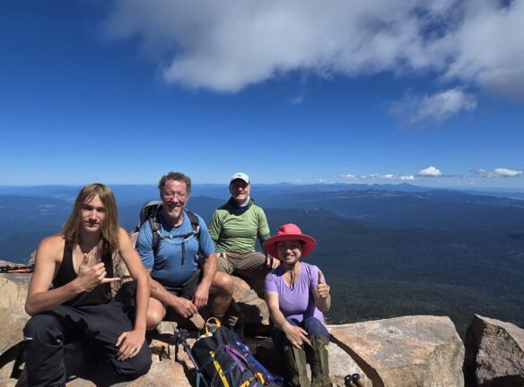 After crossing the creek at the trailhead on a small log suspended 8-10 ft above the creek, we will hike a couple of miles on maintained trails, then follow a typical class 2 climbers trail (= loose, rocky) to the summit. A few very short, easy scrambles will likely be encountered along the way. Note that this is a strenuous climb that gains about 3900 ft elevation in just over 4 miles. Participants should be in good physical condition and capable of sustaining high effort for 4-6 hours.