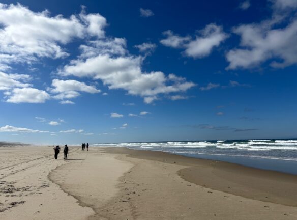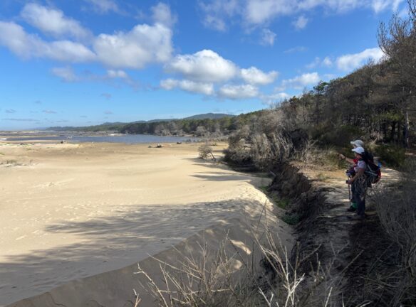 A 6.5-mile hike with huge sand dunes, a secluded ocean beach, and a return route through the forest passing a 3-mile-long lake. We will be walking the loop in a counter-clockwise direction, so the wind will be at our back while on the beach.